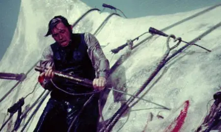 The finale of Melville's great book and the spermaceti harvest about halfway through are basically tied for Most Disturbing Whale-Based Scene. But despite the latter's massive amount of headwax, the climax had to win out. Ahab finally harpoons the white whale that has become his most consuming obsession and destroyed his life. Alas, the Captain's victory is short-lived, as the mortally wounded beast seems to know that the spear in its side is still connected to its aggressor: