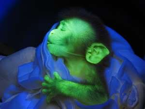 Hey, do you guys know about the monkeys that they crossed with jellyfish to make them glow in the dark? True thing.