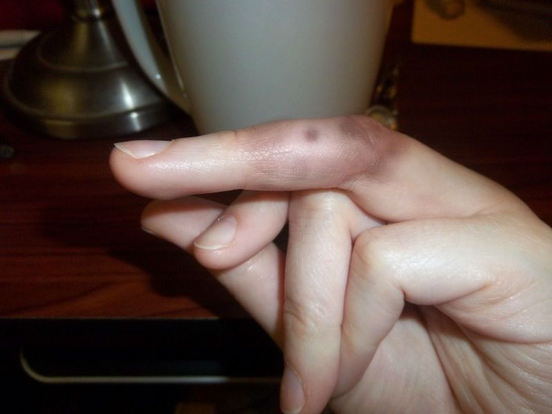 This is my finger. Once we managed to get it out of the deck chair, I took a moment to walk away from everyone, you know, just to properly mourn the loss, because it had been a good finger. And from behind me, I hear, "Jessica's having a little come apart now." And had I been able to speak...