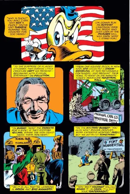 The most coherent version of Howard's politics comes from this mock interview between Howard and writer Steve Gerber, which appeared in Marvel Treasury Edition #12: