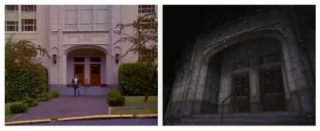 So now we’re getting into weird territory, but Arnie’s early nineties action-comedy Kindergarten Cop is referenced multiple times in Silent Hill. In the literary references instalment I mentioned that the Midwich Elementary School was identical to the school in Kindergarten Cop, but it doesn’t end there. See there are posters that are identical to those displayed in the movie, such as the white dog poster, then there’s the similarities in terms of the reception area, the first aid locker, and even the number seven school bus in Silent Hill. No prizes for guessing the number of the Kindergarten Cop bus. I guess when Team Silent aren’t watching horror films they’re kicking back with nineties Arnie classics. Perhaps next instalment we’ll get some nods to Jingle All The Way, Terminator 2, and Total Recall.