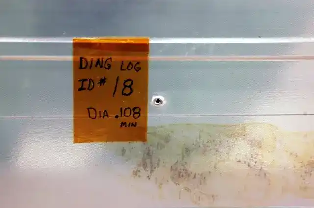 According to the second law, a very tiny object can still have an incredible acceleration and therefore a huge force when it hits something. In fact, micrometeoroids pose a significant threat to real life spacecraft. Despite their small size, they move fast enough to carry a powerful force which can damage a spaceship over time. Check out this picture from damage to the shuttle Atlantis: