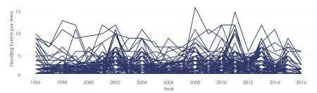 While you may not be collecting rare manuscripts or priceless works of art, your collection is meaningful and of value to you. Don't assume you have to toss everything should you encounter a water problem in your home. And if that's never happened before, lucky you! Go buy a lottery ticket. But to everyone who has survived a burst pipe, a leaky roof, a flood, or a hurricane: you're not alone. You're really not alone. FEMA has been tracking disasters for a long time, and you can go to their website and see the history of flooding events in your state and specific county. Here's Illinois, for example, with each line representing a county, and each spike a flood: