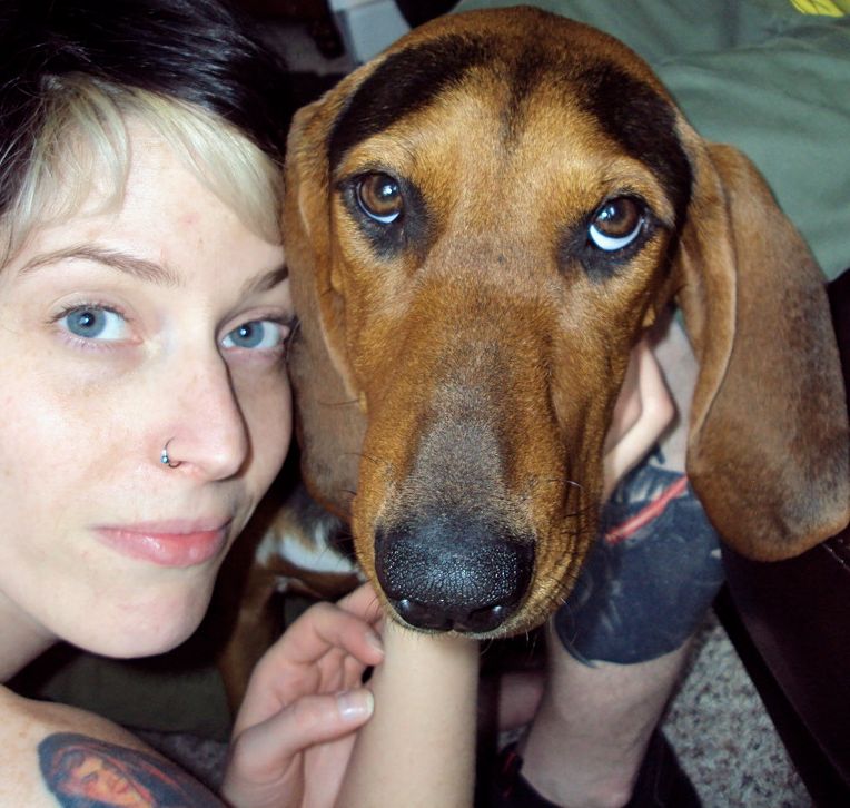Zansa, my collie/shepherd mix who as a puppy chewed out the dryer vent and stuck her head through the hole only to get stuck. This is her, traumatized after we spent an hour looking for her.
